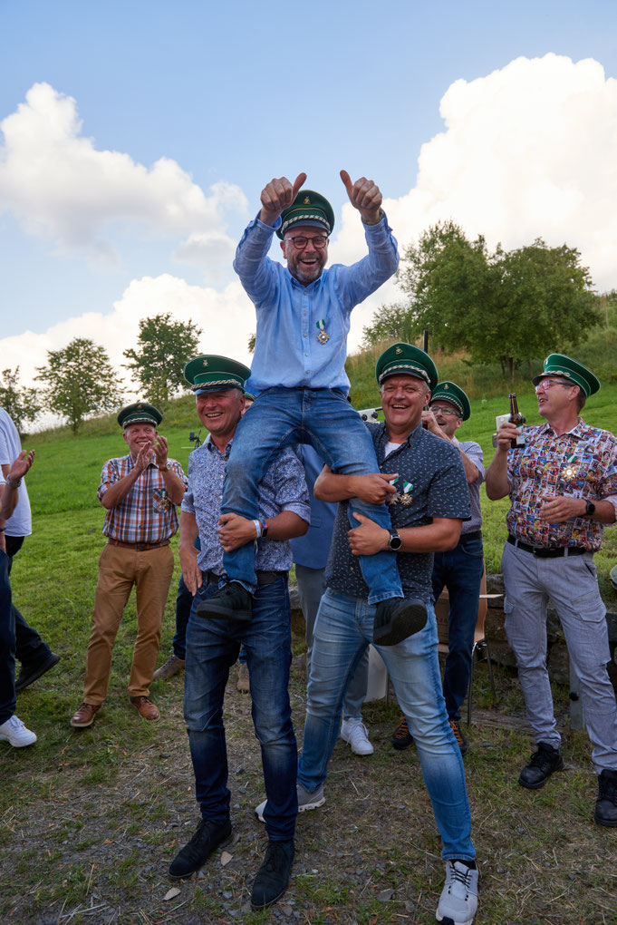 Am Samstag, den 26. Juli 2025, startete unser Schützenfestwochenende direkt mit einem großen Staatsakt: Der erste Regierungswechsel! Mit Ludger Lehnert hat Allendorf nun einen neuen Kaiser. Insgesamt haben sich 27 ehemalige Könige zum Kaiserschießen angemeldet. Fast alle 27 Hoheiten haben bis zum Schluss auf den Kaiservogel geschossen. Es konnte aber am Ende nur einen geben. Ludger holte den Vogel mit dem 240sten Schuss runter und ist nun der Nachfolger von Marc Honigmann. Ludger wird nun die nächsten 10 Jahre die Bruderschaft als Kaiser repräsentieren.